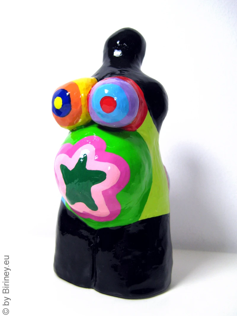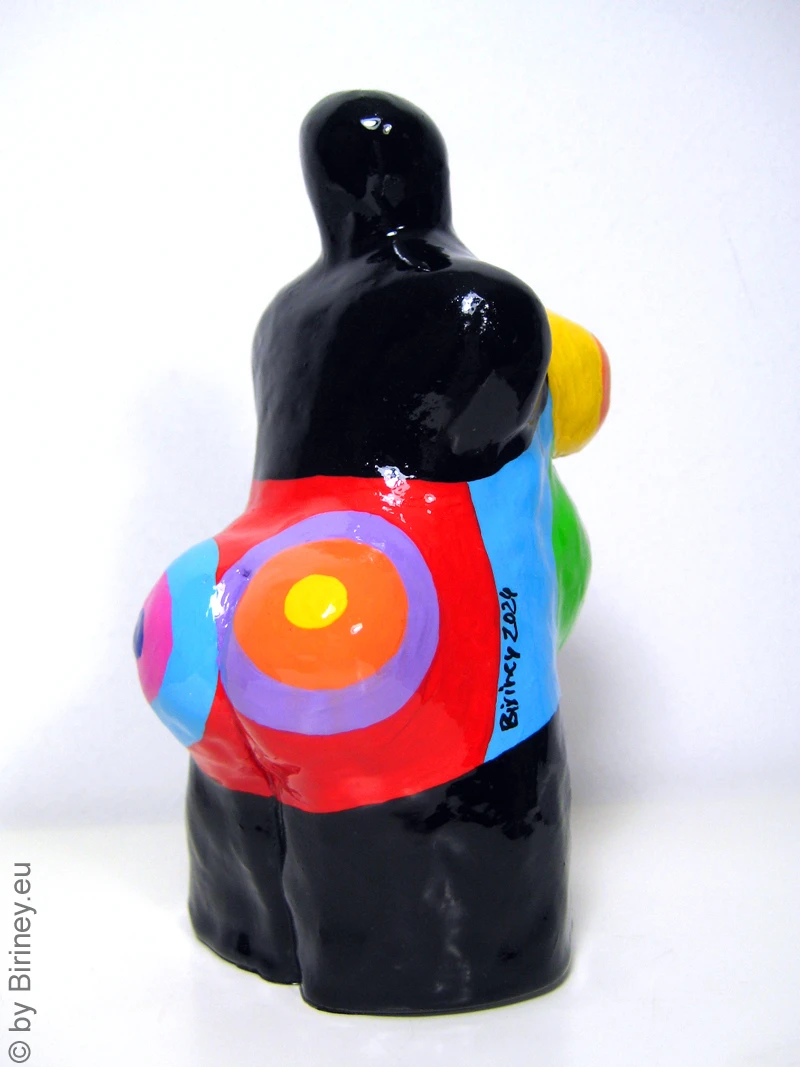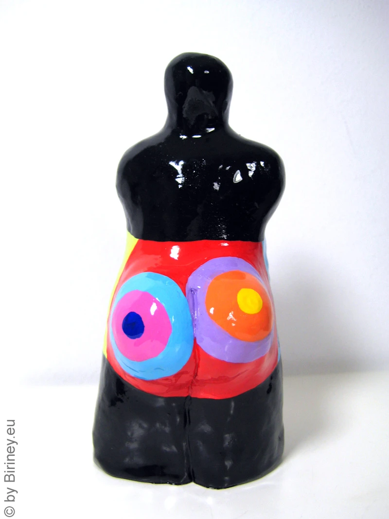 Höhe: ca. 11cm Grundfarbe des Korpus: Schwarz Technik: handgefertiger Kunstguss aus Hartgips, bemalt mit lichtechten Farben, hoch glänzend lackiert (2K-Lack mit UV-Schutzfilter).
